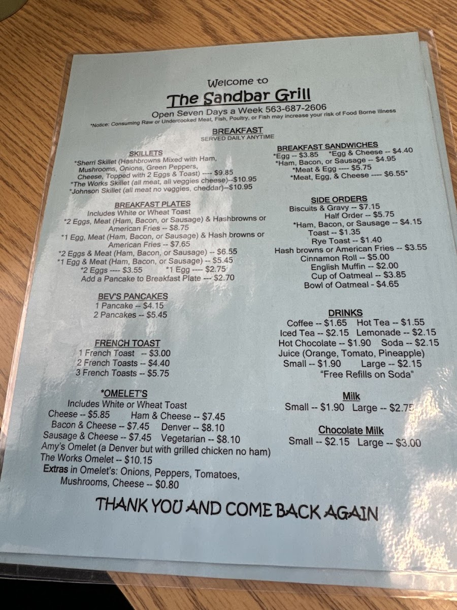 Whether you're in the mood for breakfast or craving a hearty dinner, Sandbar Grill is a culinary destination that promises excellent food, fair pricing, and a welcoming environment. From my perspective, the best part about dining here is the warmth of the community vibe and the delectable dishes that make you want to keep coming back for more. So, if you find yourself in Sabula, don’t miss out on a memorable meal at this beloved local treasure.